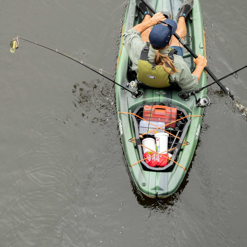 The ExoPak removable storage compartment allows you to pack your gear at home and drop it into the kayak when you arrive at the waterside.