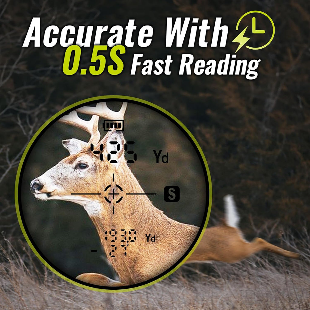 • FAST ACCURATE READING:Our rangefinder is a premium product with advanced technology that accurately ranges from 3 to 700 yards. It provides fast measurements within +/- 1 yard. Measuring speed is <0.5s, and helps you make sure you don‘t miss your targets.