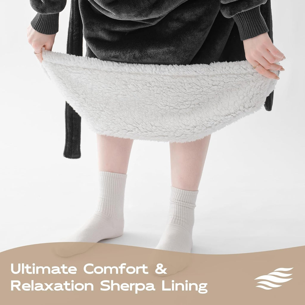 - 【OVERSIZED HOOD – COZY FROM THE TOP DOWN】: Crafted with an ultra-soft sherpa-lined oversized hood, this blanket hoodie provides extra warmth where you need it most—your head, ears, and neck. Perfect for relaxing indoors or stepping out for a moment, the deep hood creates a cocoon of softness, locking in body heat and shielding you from the cold. It’s cozy, comforting, and adds a stylish touch to your winter lounge wear.